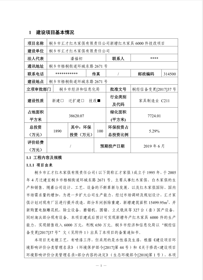 桐鄉(xiāng)市匯才紅木家俱有限責(zé)任公司 新增紅木家具6000件技改項目