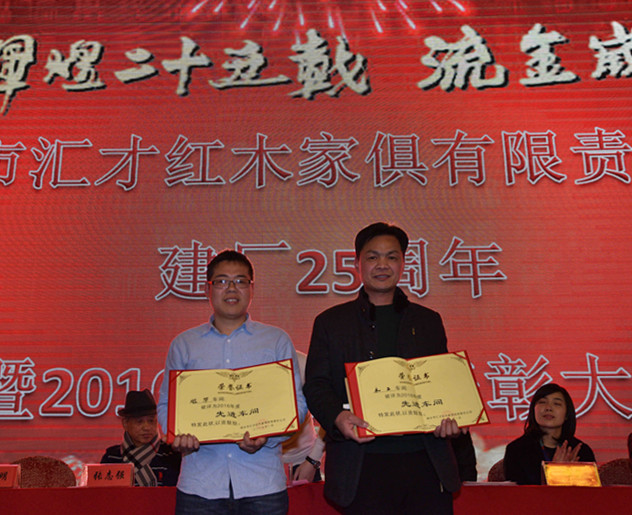 首先,匯才紅木2016年總結(jié)表彰大會隆重召開。公司董事長潘福初,總經(jīng)理潘一峰,董事長助理帥莉,副總經(jīng)理徐富根,總經(jīng)理助理潘順明,黨建指導(dǎo)員張偉,公司顧問張志強出席會議并在主席臺就坐。會議表彰了2016年度先進(jìn)車間和先進(jìn)員工。經(jīng)過層層打分評選,木工車間和雕花車間榮獲本年度“先進(jìn)車間”稱號,殳阿六等22名員工榮獲“先進(jìn)員工”稱號。這次評選工作充分發(fā)揚了民主、公平、公正、公開的原則,全體中層管理人員共同討論,全體員工積極參與、實事求是,順利完成本次評選工作。