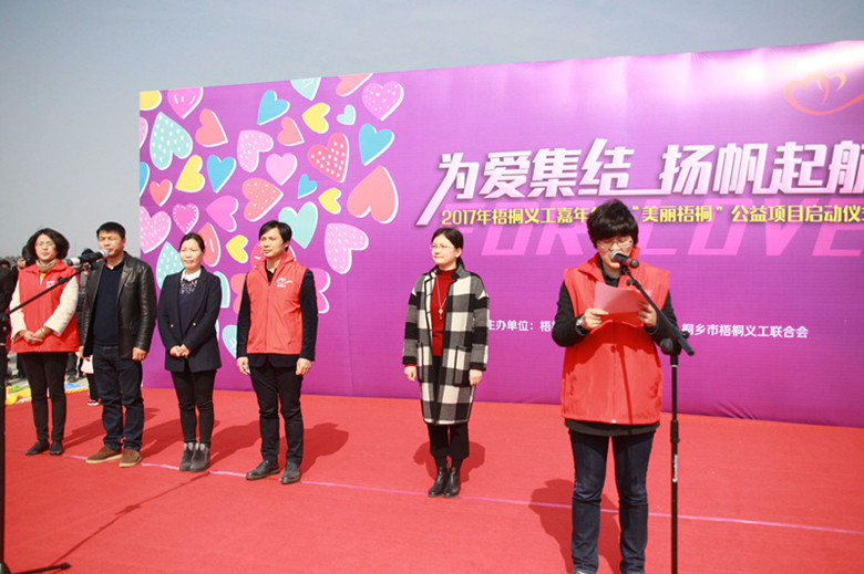 2月28日,“愛(ài)心集結(jié) 揚(yáng)帆起航”2017年梧桐義工嘉年華暨“美麗梧桐”公益項(xiàng)目啟動(dòng)儀式在鳳凰湖畔舉行。梧桐街道黨委副書(shū)記夏根偉,市民政局社工科科長(zhǎng)錢(qián)亞平等出席啟動(dòng)儀式。來(lái)自梧桐街道的13支義工隊(duì)伍和150名義工參加儀式。匯才紅木副總經(jīng)理、黨支部書(shū)記徐富根參加儀式,并在儀式上代表公司捐贈(zèng)5000元作為項(xiàng)目幫扶基金。