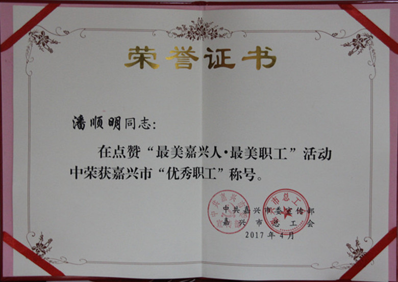 他技術(shù)能力過硬,為人謙虛,兢兢業(yè)業(yè)做事,踏踏實(shí)實(shí)做人,刻苦鉆研,精益求精,創(chuàng)建“潘順明高技能人才工作室”。他嚴(yán)格要求自己,加強(qiáng)學(xué)習(xí),認(rèn)真工作,深入一線,十幾年如一日,獲得了公司領(lǐng)導(dǎo)和員工、廣大客戶和社會(huì)的認(rèn)可,光榮地成為“桐鄉(xiāng)工匠”、 桐鄉(xiāng)市“金藍(lán)領(lǐng)”高技能人才、嘉興市“最美職工”。