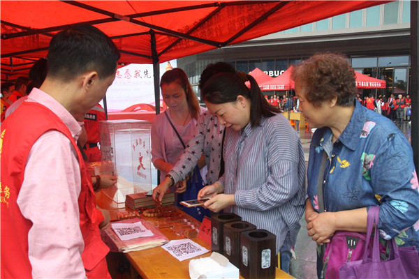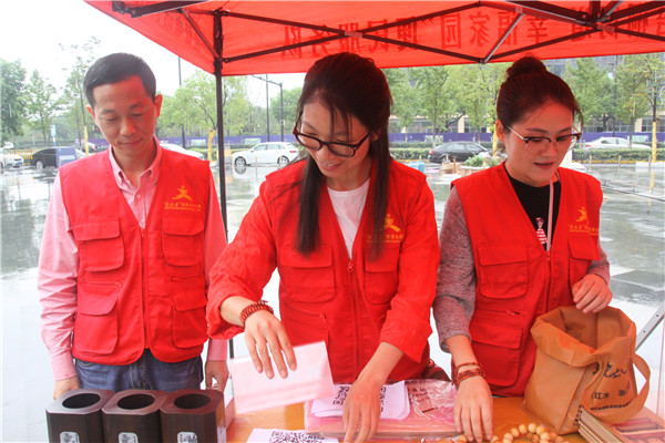 喜迎十九大,匯才志愿行。匯才紅木黨支部參加梧桐街道黨員義賣活動(dòng)。