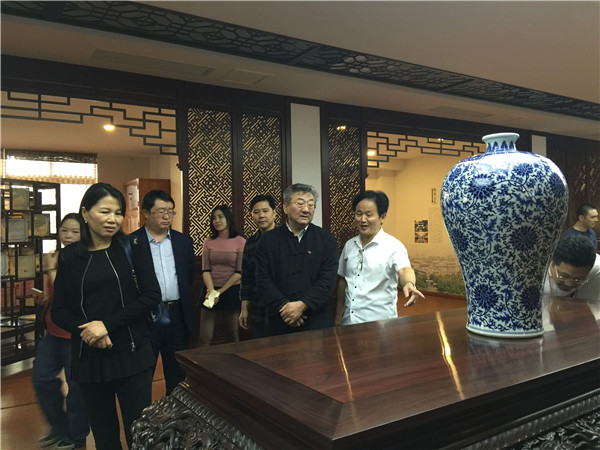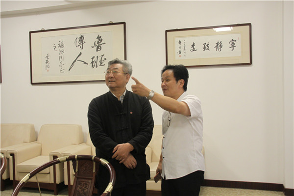 中國著名書法家章柏年,中國書法家協(xié)會(huì)會(huì)員、匯才紅木黨建指導(dǎo)員張偉,韓天衡入室弟子、中國書法家協(xié)會(huì)會(huì)員呂燮強(qiáng),匯才紅木董事長潘福初等陪同。