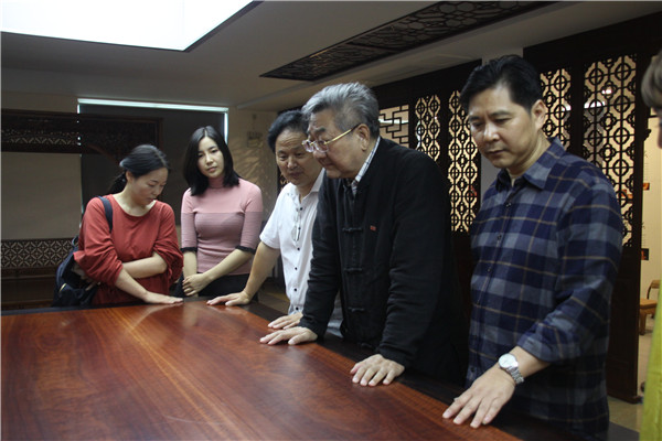 10月6日下午,韓天衡大師一行再次走進(jìn)匯才紅木,在參觀了博物館和園林后,他說,匯才紅木26年來對(duì)于蘇作紅木家具制作技藝精雕細(xì)琢、精益求精和紅木文化傳承的堅(jiān)持,是行業(yè)內(nèi)的佼佼者,難能可貴!并以“精雕細(xì)琢、精準(zhǔn)傳承”給予公司高度評(píng)價(jià),希望匯才紅木繼續(xù)傳承和發(fā)揚(yáng)蘇作紅木文化,將蘇作紅木家具事業(yè)發(fā)揚(yáng)光大!