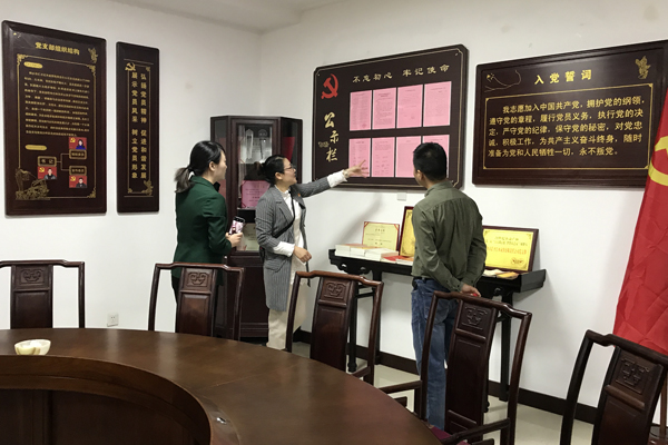 領(lǐng)導(dǎo)們實(shí)地查看了公司的黨建宣傳欄、紅色長(zhǎng)廊、黨員活動(dòng)室、黨員高技能人才工作室和黨群聯(lián)心室等紅色陣地,對(duì)公司黨建工作給予了充分肯定。特別是黨員活動(dòng)室結(jié)合紅木文化、紅木元素的全新改版和黨員高技能人才工作室的成功運(yùn)作,黨群聯(lián)心室的談心活動(dòng)等,獲得了領(lǐng)導(dǎo)們的點(diǎn)贊和一致好評(píng)。